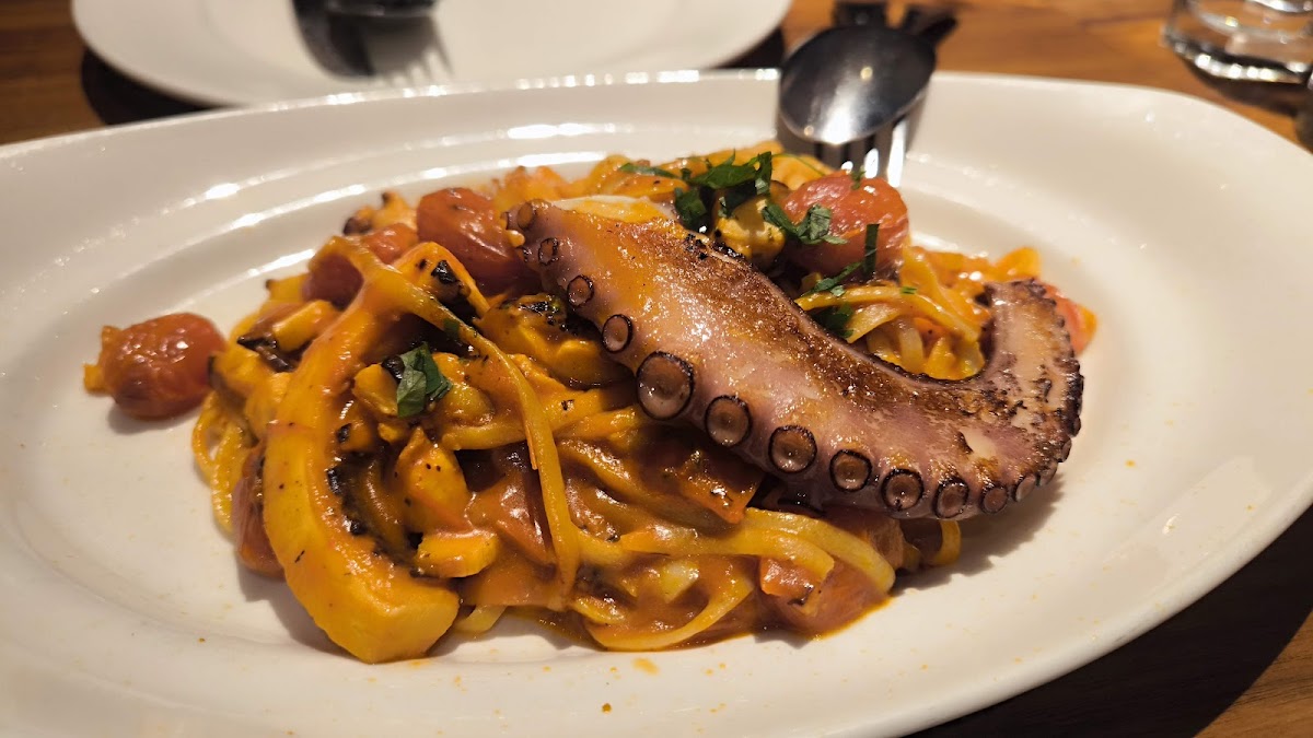 - Polipo Con Patate - tender grilled octopus with celery, cherry tomatoes, and red onions, a true delicacy for $26.40.